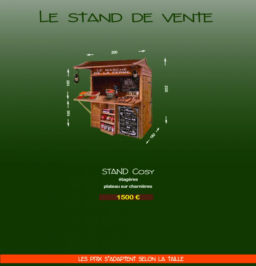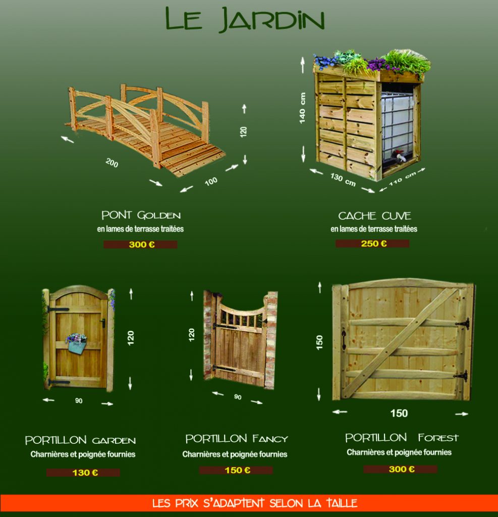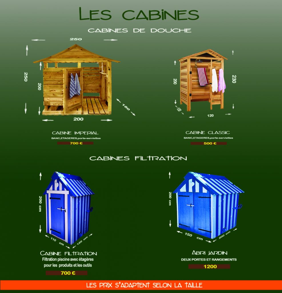 accueil historique contact Mes Créations Mes abris bois Tarification et dimensions abris bois de chauffage... Les cabanes ... Tarification et dimensions Les cabines de change... Tarification et dimensions cabines toilettes sèches... Tarification et dimensions divers ... Tarification et dimensions votre titre ici Stand de vente... Tarification et dimensions Bars... Tarification et dimensions Le jardin... Tarification et dimensions