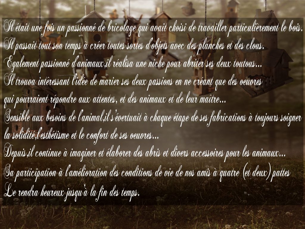 CONTACT route de veaux quartier rieufroid 84340 Malaucène 0667832263 daniel.maegerlin@orange.fr Fabrication artisanale soucis du détail Esthétique la galerie des animaux